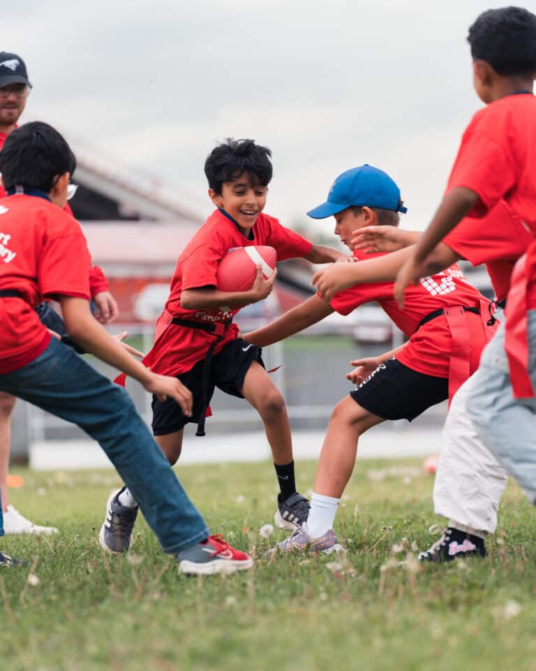 The program, coached by Calgary Flames Classroom Crew, was designed for kids who had never played flag football before, many of whom were newcomers. Participants were connected through valued community partners including Football Hockey Link, Diversecities Centre for Newcomers, Umoja, Calgary Bridge Foundation for Youth, and local social workers.